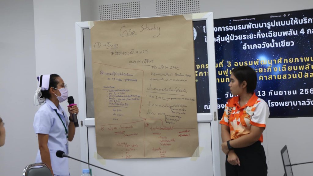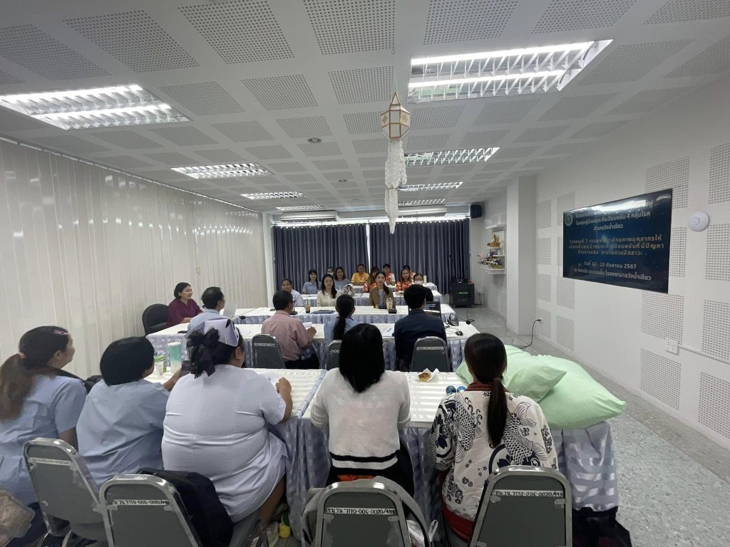 กลุ่มงานการพยาบาล และกลุ่มงานเวชกรรมฟื้นฟู รพ.วังน้ำเขียว ได้จัดโครงการพัฒนารูปแบบให้บริการฟื้นฟูในกลุ่มผู้ป่วยระยะกึ่งเฉียบพลัน 4 กลุ่มโรค อำเภอวังน้ำเขียว กิจกรรมที่ 3 อบรมพัฒนาศักยภาพบุคลากรให้บริการฟื้นฟูผู้ป่วยระยะกึ่งเฉียบพลันที่มีปัญหาด้านการกลืน คาสายสวนปัสสาวะ ในวันที่ 12-13 กันยายน 2567 โดยมีทีมสหวิชาชีพ และ รพ.สต.ทุกแห่งเข้าร่วมอบรม เพื่อพัฒนาองค์ความรู้ ทักษะ รวมไปถึงการออกแบบแนวทางการดูแลผู้ป่วยระยะกึ่งเฉียบพลัน